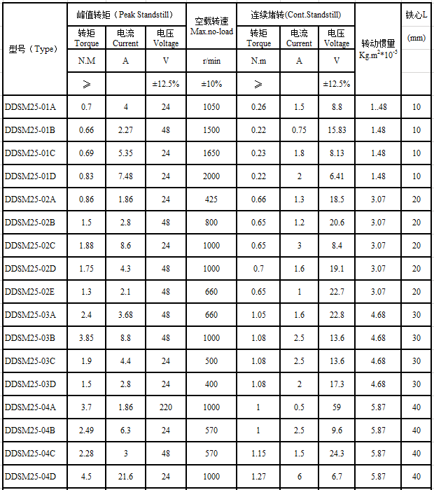 DDSM25 series brushless direct drive motor performance indicators