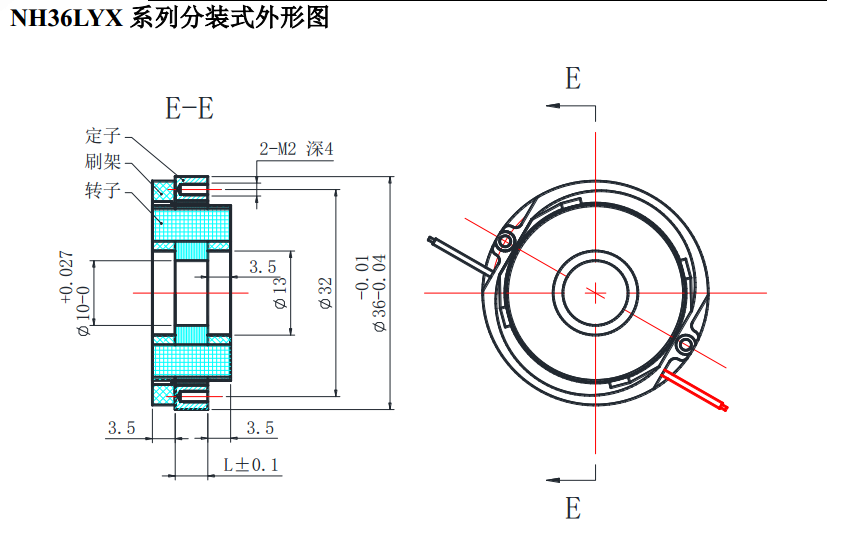 NH36LYX series of dc torque motor dimensions
