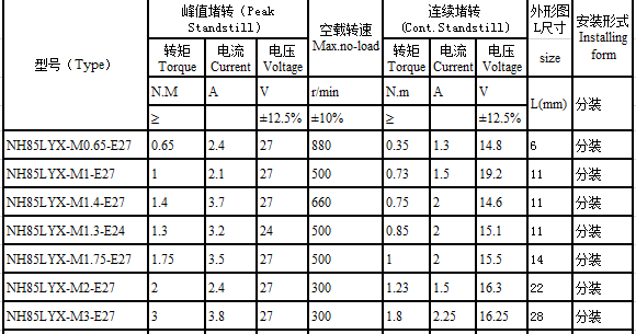 NH85LYX series brushless torque motor performance indicators