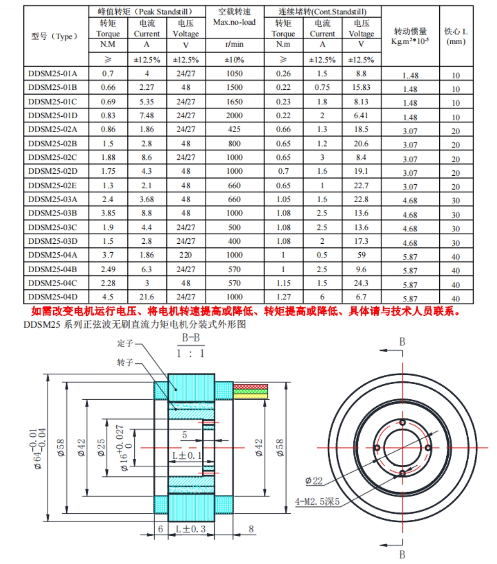 DDSM25系列無刷直流力矩電機