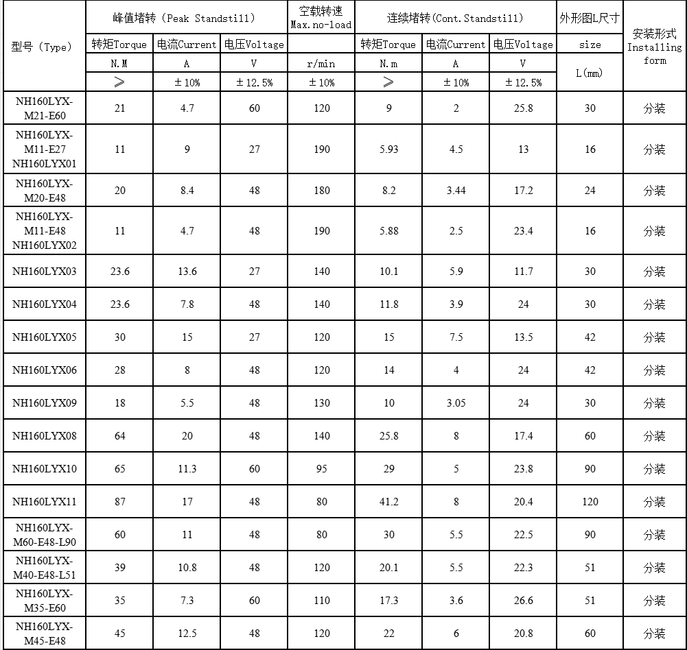 NH160LYX系列直流力矩電機(jī)